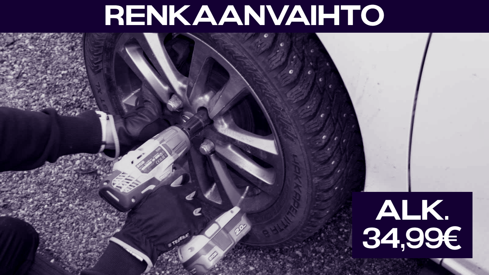Renkaanvaihto kotipihallasi tai sovitussa paikassa alk. 34,99€ (henkilöauto/pakettiauto/mopoauto/traktorimönkijä)